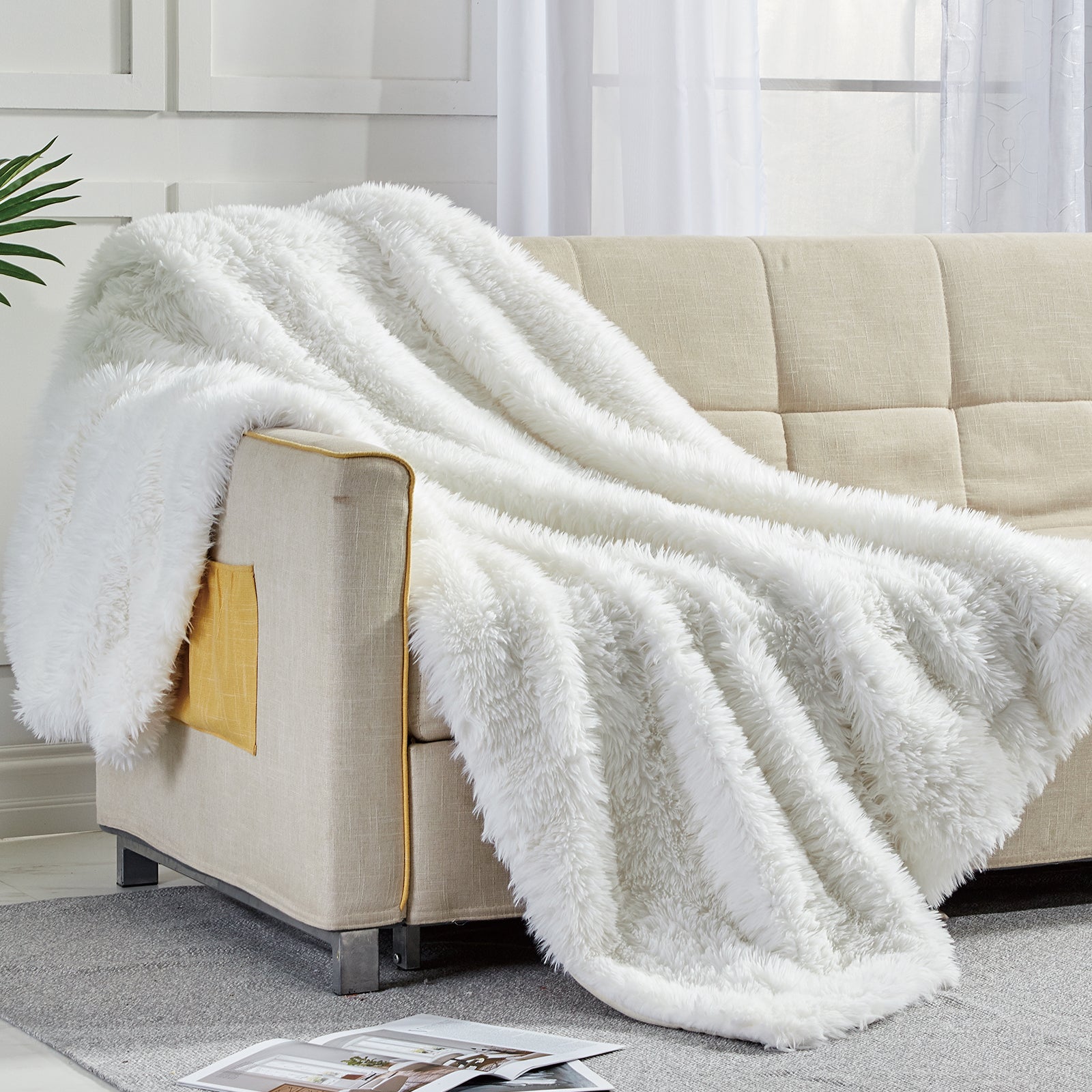 - Dual Sided: In order to be unique, aesthetic and animal friendly, our cream throw blanket use a two-sided design. The front side is 1.5'' faux fur throw blanket, the back side is minky blanket, these two different materials make our blanket not only give you a comfortable and warm feeling, but also make it skin-friendly enough.