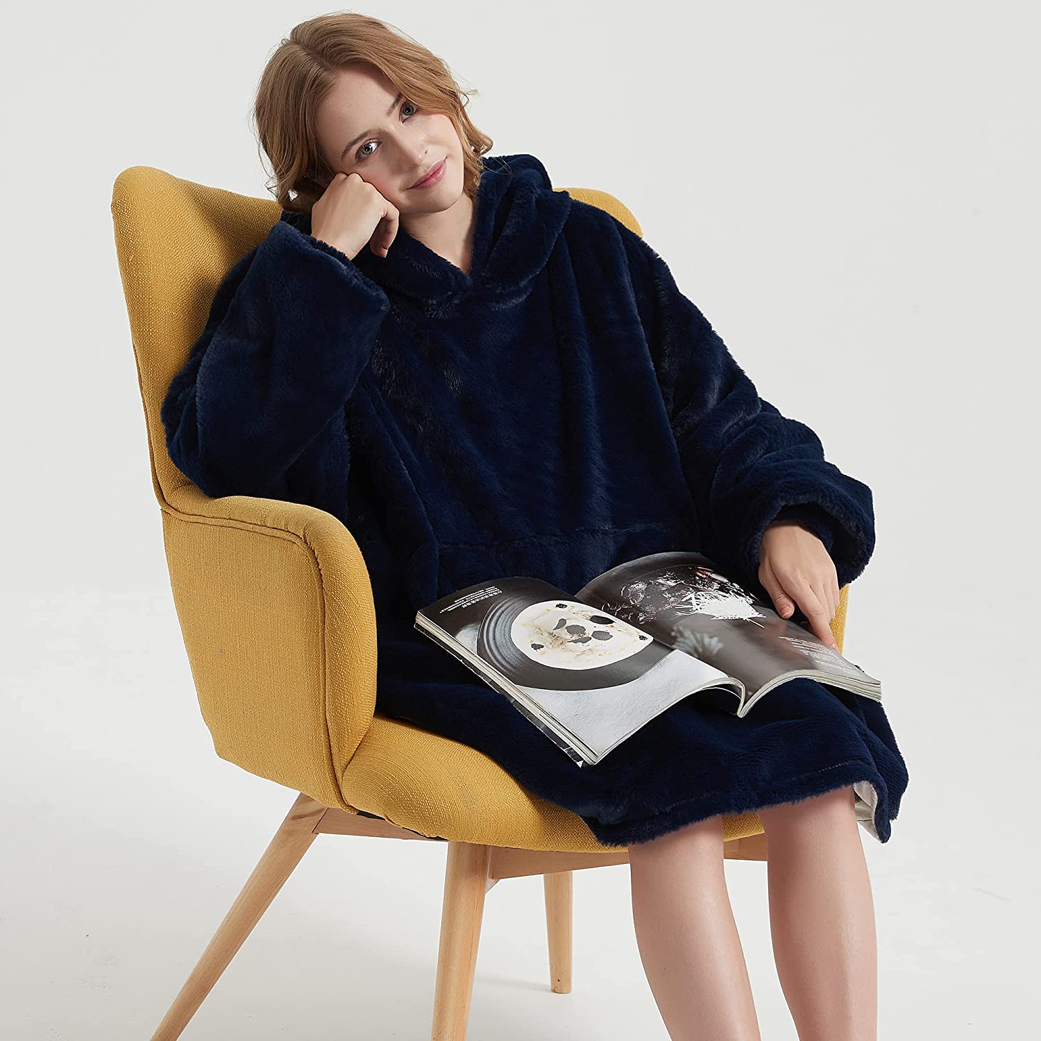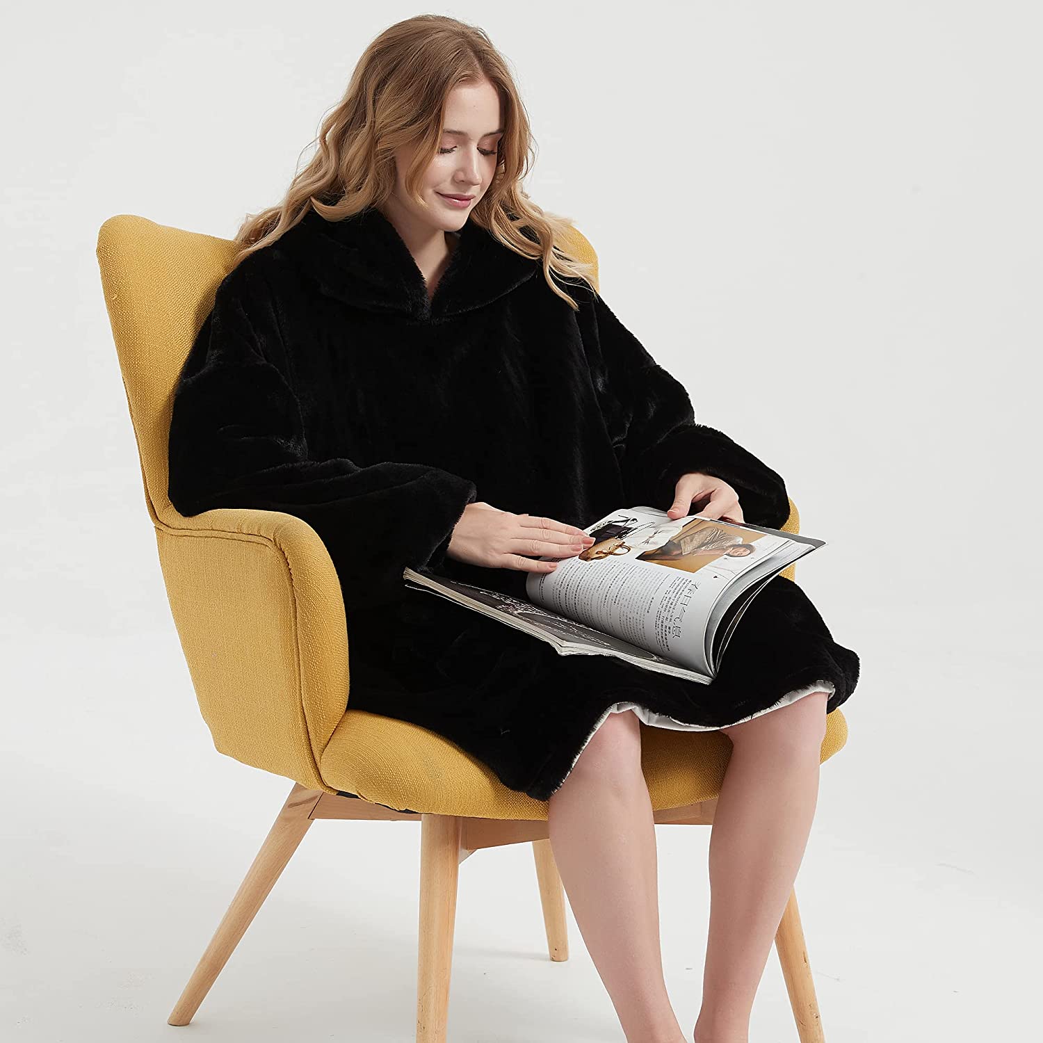 - 【Feel of Rabbit Fur】-- Our wearable blanket hoodie is faux fur blanket sweatshirt, this material will give you a feel of rabbit fur, super comfortable to wear. So there's no doubt that you will not feel cold while you wearing this oversized hoodie blanket, and the warm feeling is just like someone giving you a big warm hug.