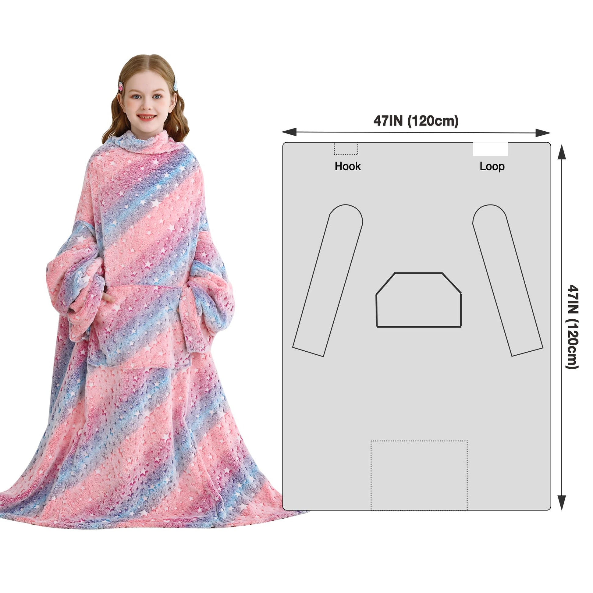 - 【Great Gift】Great gift for all children for birthdays, back to school, Christmas, graduation. Kids can choose the wearable fleece blanket with pink rainbow, white unicorn, truck football and car in different colors and prints, which is very convenient!